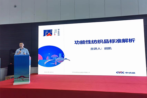 展會期間,中紡標(biāo)浙江公司總經(jīng)理助理胡凱在中國(紹興)功能性紡織品論壇上做了“功能性紡織品標(biāo)準(zhǔn)解析”的主題發(fā)言。胡凱從功能性紡織品標(biāo)準(zhǔn)體系,功能性服裝產(chǎn)品標(biāo)準(zhǔn)的選擇,功能性紡織品標(biāo)準(zhǔn)發(fā)展趨勢等三個方面做了專業(yè)分享。同時,參展團隊積極推廣檢測項目及公司業(yè)務(wù),詳細(xì)解答展位垂詢企業(yè)的相關(guān)咨詢,針對意向合作企業(yè)進(jìn)行一對一重點商談,進(jìn)一步明確合作方向,并邀請企業(yè)代表來公司實地參觀交流。