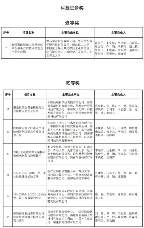 獲獎(jiǎng)單位:神馬實(shí)業(yè)股份有限公司、中國(guó)紡織科學(xué)研究院有限公司、浙江理工大學(xué)、中國(guó)化工集團(tuán)曙光橡膠工業(yè)研究設(shè)計(jì)院有限公司、三橡股份有限公司、華東理工大學(xué)