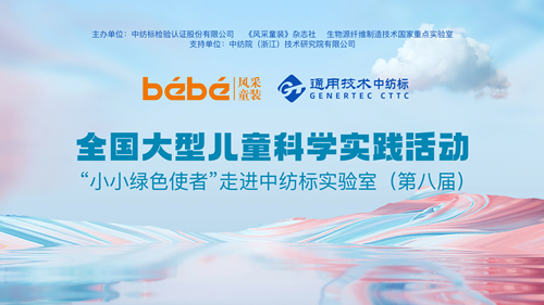 第八屆“小小綠色使者”活動由通用技術(shù)中紡院中紡標(biāo)檢驗認證股份有限公司(以下簡稱“中紡標(biāo)”)、《風(fēng)采童裝》雜志、生物源纖維制造技術(shù)國家重點實驗室主辦,由中紡院(浙江)技術(shù)研究院有限公司、深圳市世凡服飾有限公司特別支持。中紡標(biāo)作為紡織服裝檢驗檢測行業(yè)的權(quán)威技術(shù)機構(gòu),被中國紡織工程學(xué)會授予“科普教育基地”,始終踐行央企擔(dān)當(dāng),履行社會責(zé)任,整合多元渠道傳播綠色理念,普及科學(xué)文化知識?;顒又鬓k方的初衷是期待通過“小小綠色使者”的學(xué)習(xí)和傳播,讓更多的人了解服裝的綠色理念,更好地選擇綠色健康的服飾,更好地詮釋綠色教育理念。希望喜愛科技的小朋友們積極參加,爭當(dāng)“小小綠色使者”,更希望通過社會影響力的不斷疊加,進一步促進服裝企業(yè)規(guī)范生產(chǎn),提升質(zhì)量,滿足市場及消費者的多樣化需求。