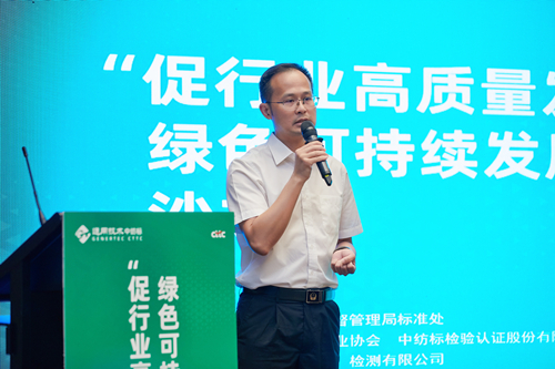 深圳市市場監(jiān)督管理局標準處副處長徐均偉在致辭中表示,深圳市場監(jiān)督管理局標準處致力于推動高標準和質量,同樣也注重企業(yè)對環(huán)境和社會的責任,鼓勵和支持企業(yè)推動綠色轉型。他代表標準處感謝中紡標搭建溝通交流平臺,發(fā)揮權威檢驗檢測機構的影響力,匯聚合力幫助企業(yè)完成綠色轉型。“路雖遠,行則將至,事雖難,做則必成”,他同時呼吁更多的力量加入到“雙碳”行動中來,助力行業(yè)實現(xiàn)綠色發(fā)展。