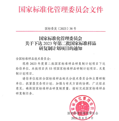 2023年8月7日,國(guó)家標(biāo)準(zhǔn)化管理委員會(huì)印發(fā)《關(guān)于下達(dá)2023年第二批國(guó)家標(biāo)準(zhǔn)樣品研復(fù)制計(jì)劃項(xiàng)目的通知》(國(guó)標(biāo)委發(fā)[2023]38號(hào)),下達(dá)2023年度第二批國(guó)家標(biāo)準(zhǔn)樣品研復(fù)制計(jì)劃項(xiàng)目共53項(xiàng),正式立項(xiàng)的6項(xiàng)紡織標(biāo)準(zhǔn)樣品計(jì)劃均由通用技術(shù)中紡院中紡標(biāo)檢驗(yàn)認(rèn)證股份有限公司(以下簡(jiǎn)稱(chēng)“中紡標(biāo)”)承擔(dān)研制。