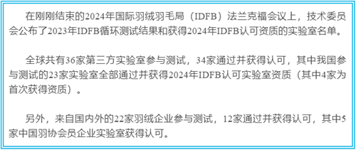 喜訊丨中紡標獲得2024年IDFB認可實驗室資質
