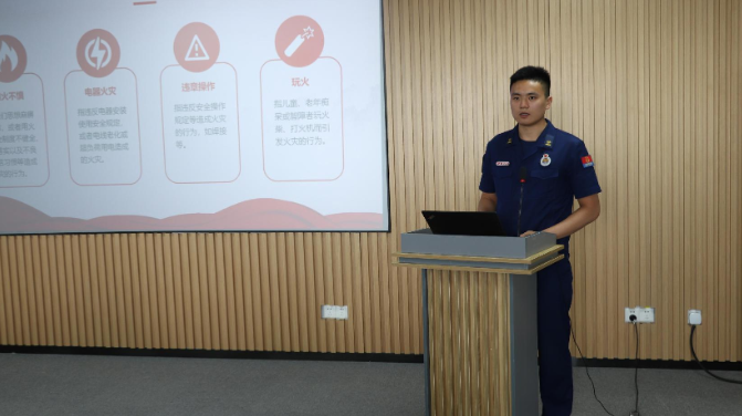 緊接著,紹興市濱海新區(qū)大隊(duì)袍中路消防救援站婁銀偉為大家?guī)?lái)了一場(chǎng)專業(yè)的消防安全防火培訓(xùn)。婁消防員從火災(zāi)的成因、預(yù)防措施、逃生技巧等方面進(jìn)行了全面講解,并結(jié)合實(shí)際案例,讓大家深刻認(rèn)識(shí)到火災(zāi)的危害性和防火工作的重要性。他還現(xiàn)場(chǎng)演示了消防器材的使用方法,讓大家對(duì)消防設(shè)施有了更直觀的認(rèn)識(shí)。