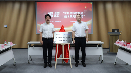 會(huì)議現(xiàn)場(chǎng),浙江中紡標(biāo)和上汽大眾質(zhì)量保證部實(shí)驗(yàn)室分別對(duì)企業(yè)發(fā)展情況及黨建工作進(jìn)行了介紹,隨后簽訂了黨建共建合作協(xié)議,并進(jìn)行“車(chē)內(nèi)材料微生物技術(shù)研究課題組”揭牌儀式。