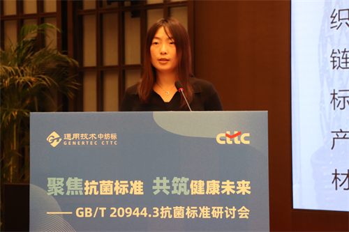 中紡標(biāo)內(nèi)設(shè)全國紡織標(biāo)準(zhǔn)與耗材中心,負(fù)責(zé)試驗(yàn)用耗材及標(biāo)準(zhǔn)樣品的咨詢、研發(fā)及供應(yīng)工作。先后承擔(dān)了十多項(xiàng)國家標(biāo)準(zhǔn)樣品和團(tuán)體標(biāo)準(zhǔn)樣品的研復(fù)制工作。中紡標(biāo)標(biāo)準(zhǔn)耗材部李賢雯在《抗菌標(biāo)準(zhǔn)樣品項(xiàng)目介紹》推介中,詳細(xì)介紹了由中紡標(biāo)主導(dǎo)研制的“測定紡織品抗菌性能用控制織物標(biāo)準(zhǔn)樣品”的研制流程、技術(shù)要求、樣品制備、樣品檢驗(yàn)等內(nèi)容,為紡織品抗菌檢測提供標(biāo)準(zhǔn)標(biāo)樣。