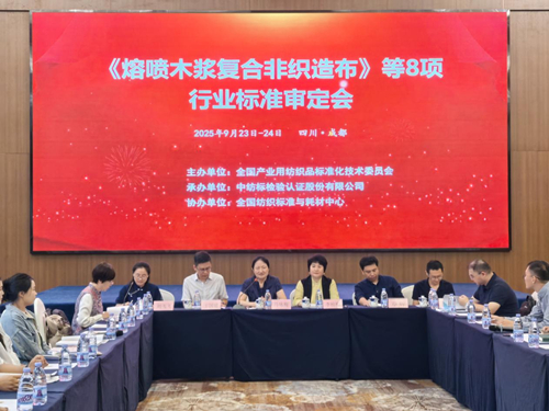 2025年9月23日~24日,全國產業(yè)用紡織品標準化技術委員會(TC606)在成都召開了《熔噴木漿非織造布》等8項行業(yè)標準審定會。中國產業(yè)用紡織品行業(yè)協(xié)會會長、TC606副主任委員李桂梅,通用技術中國紡織科學研究院有限公司總經理、TC606副主任委員馬詠梅,中國紡織工業(yè)聯(lián)合會科技部標準計量處處長、TC606副主任委員王國建,通用技術中紡標檢驗認證股份有限公司副總經理章輝出席會議。來自行業(yè)協(xié)會、科研院所、大專院校、海關、質檢系統(tǒng)、檢驗機構、生產企業(yè)以及標準起草單位等120余名代表參加本次會議。