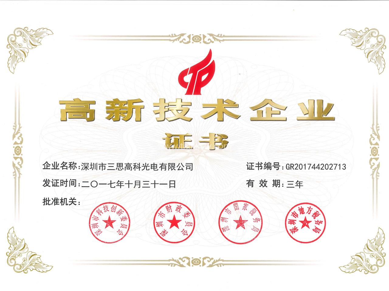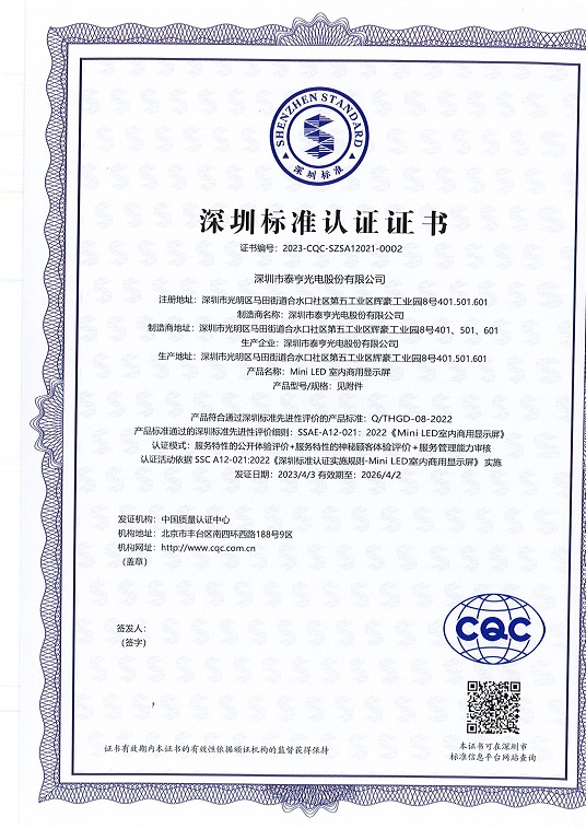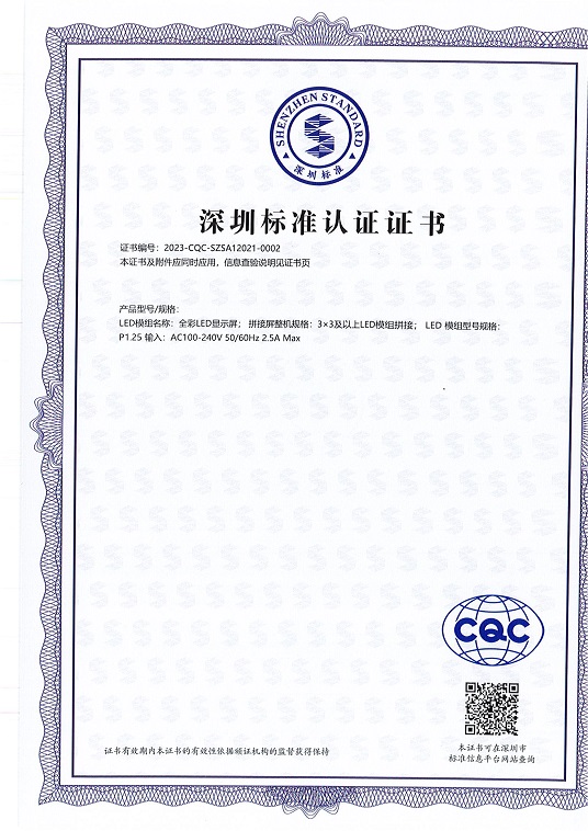 深圳標準認證證書