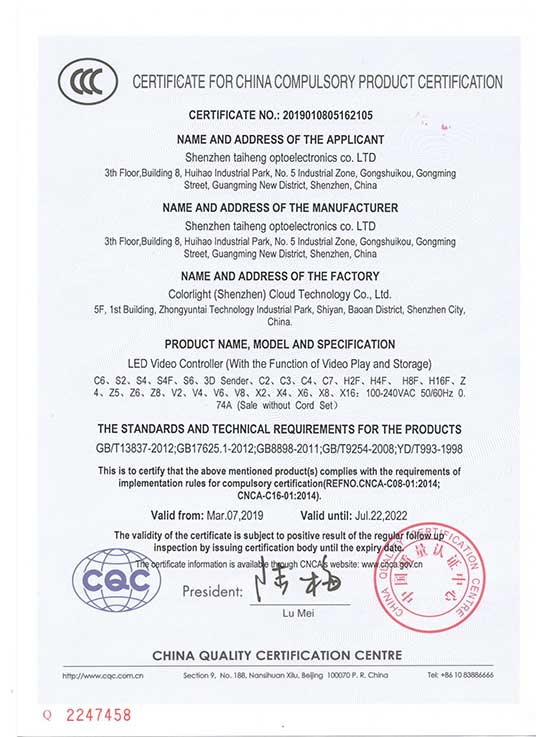 LED顯示屏CCC認證